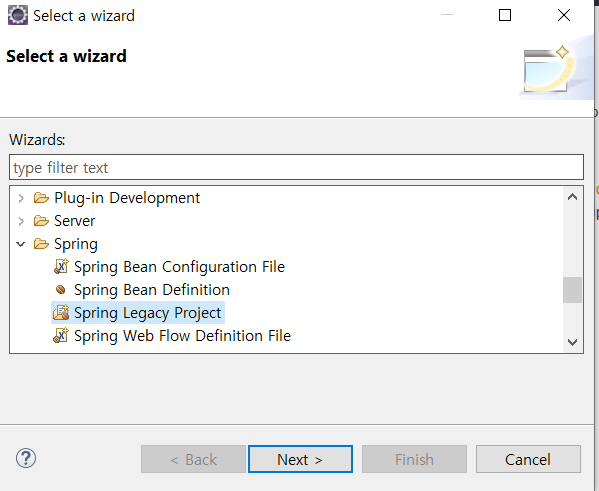 폴더 안의 Spring Legacy Project를 누르고 생성해본다.