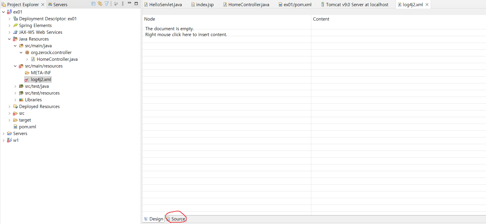 다시 ex01의 pom.xml파일로 들어가서 아래 코드를 넣고 저장한다.