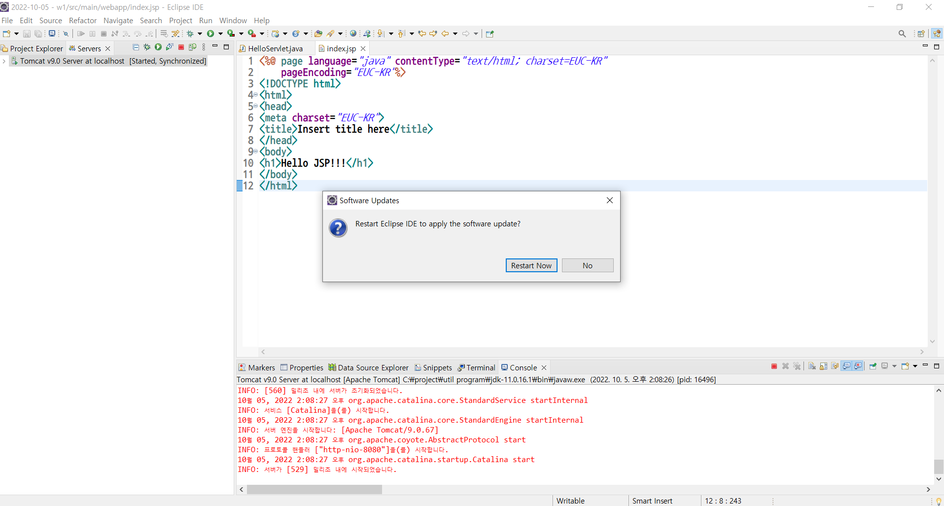 미리 설치한 프로그램: eclipse 2022-06 버전, 자바 11버전, apache-tomcat-9.0.67