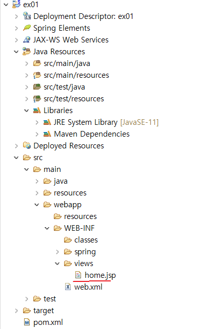 src->main->webapp->WEB-INF->views에서 home.jsp를 생성한다.